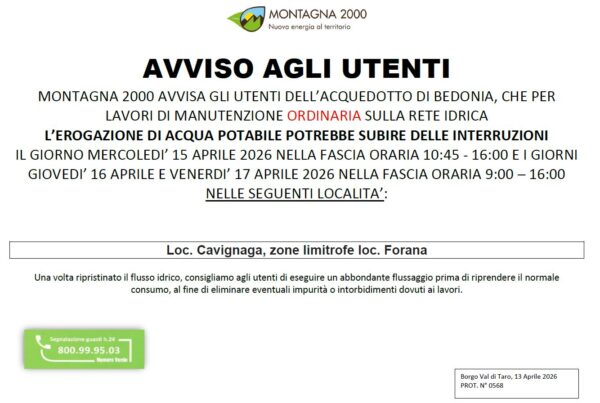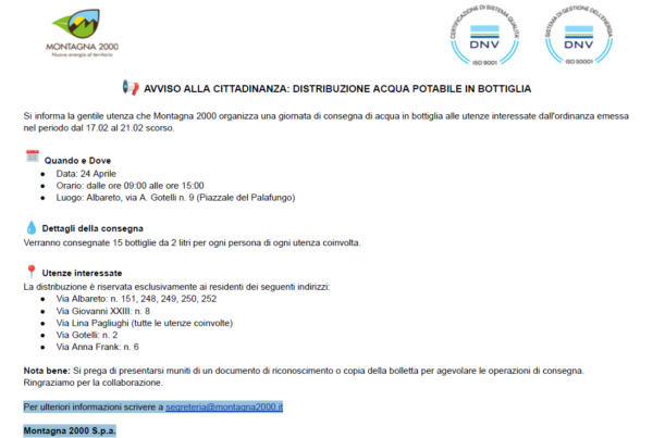 Ogni anno vengono eseguite le analisi sulla qualità dell’acqua distribuita alle utenze in ognuno degli acquedotti in gestione.