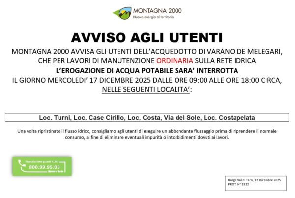 Ogni anno vengono eseguite le analisi sulla qualità dell’acqua distribuita alle utenze in ognuno degli acquedotti in gestione.